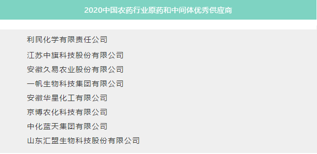 捷報(bào)頻傳!一帆生物斬獲2020中國(guó)農(nóng)藥行業(yè)優(yōu)秀原藥和中間體供應(yīng)商 |