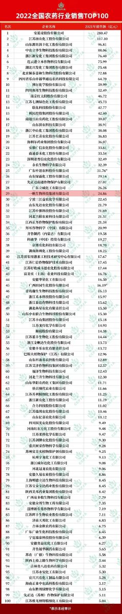 附2022全國農(nóng)藥行業(yè)銷售TOP100完整表單如下: