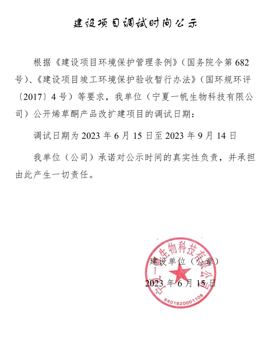 寧夏一帆建設(shè)項(xiàng)目調(diào)試時(shí)間公示
