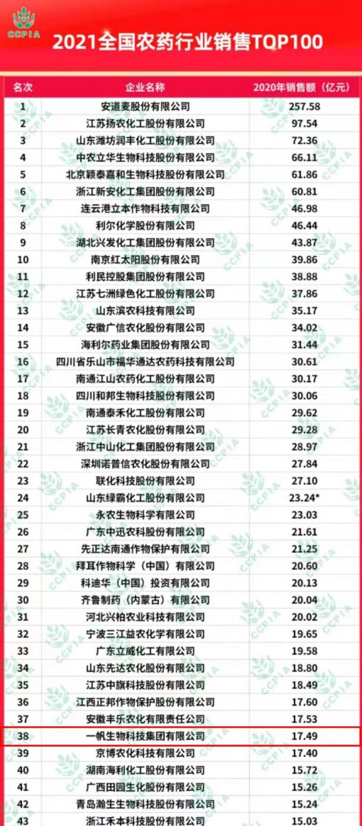 YIFAN ranks 38st! 2021 TOP 100 China Pesticide Sales Released |